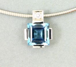 Art Deco Anhänger aus 750er Weißgold mit einem phantastisch blauen Aquamarincarree von 4,7 Carat (10,4x10,4 mm im Quadrat )