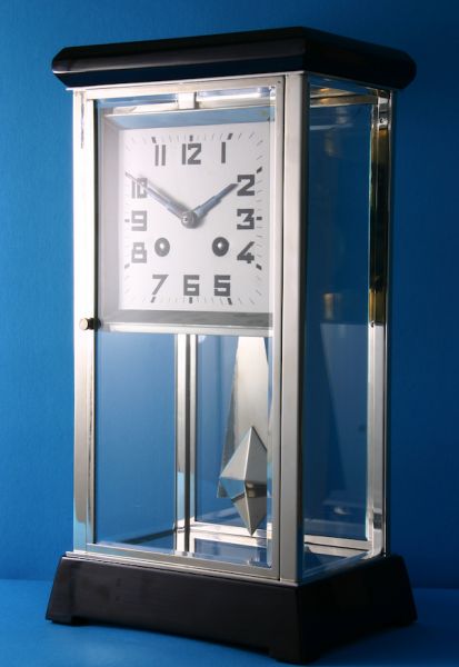 Art Deco Kaminuhr (Vierglasuhr)in vernickeltem Gehäuse
