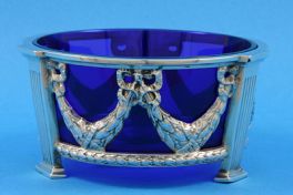 Getrieben und gedoppelt, drei Füße, Einsatz aus blauem Kobaltglas