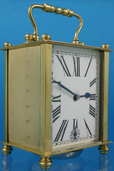 Französische Art Deco Reiseuhr von ca. 1920 in einem Gehäuse aus gegossenem, geschliffenen und poliertem Messing.