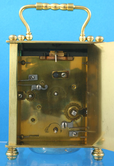 Massives Messingachttagewerk von Couaillet, St.Nikolas d'Aliermont (Normandie) mit Zylinderhemmung, Ringunruhe, gebläuter Stahlspirale, 6 Steinen, Weckerwerk