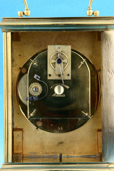 Französische Reiseuhr mit guillochierter und versilberter Front