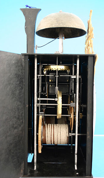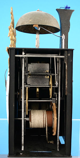 Gewichtsgetriebenes Wochenwerk mit Spindelhemmung und Faltpendel mit einer Bleibirne.
