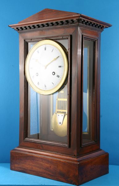 Massives, vierseitig verglastes, Holzgehäuse mit Mahagoni-Sägefurnier und massivem Mahagoniholz gearbeitet