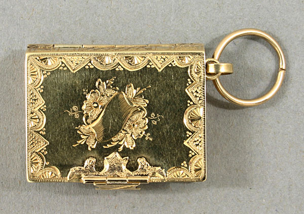 Medaillon in Buchform von ca. 1870 aus 14 K = 585 er Gelbgold