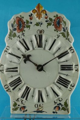 Zifferblatt aus glasierter und bemalter Keramik mit erhabenen römischen Zahlen, ähnlich den Cartuschenzifferblättern, war gebrochen, alte Reparatur
