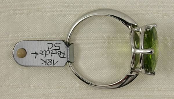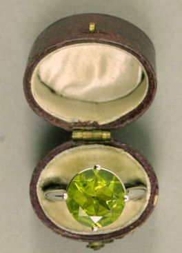 Ring aus 750er Weißgold mit einem Peridot (Olivin), Durchmesser 12 mm, ca. 5 Carat, sehr intensives Grün