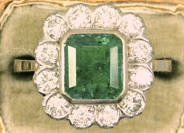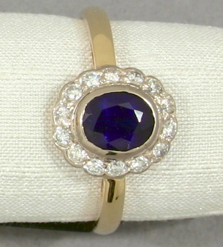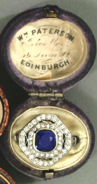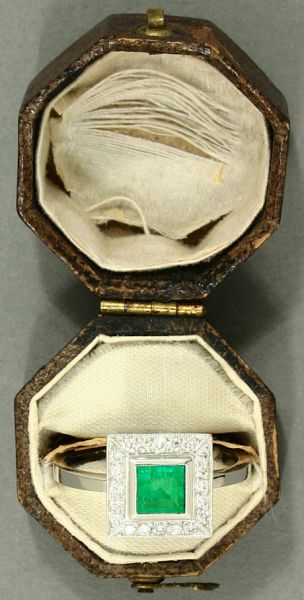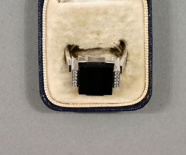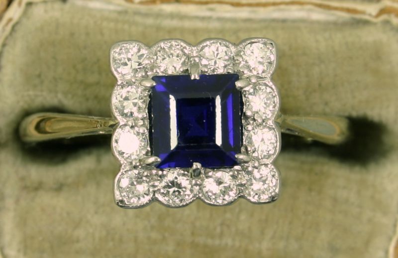 Quadratischer Art-Deco Ring mit Saphir 0,69 und Brillanten 0,12