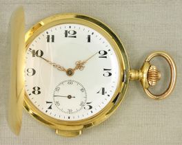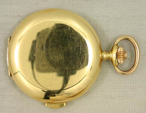 Massives glattes Gehäuse aus 18K = 750er Gelbgold, Staubdeckel auch aus Gold.