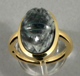 Ring aus 750er Gelbgold mit einem Skarabäus aus Labradorit