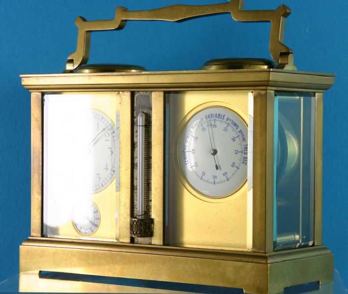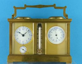 Französische Reiseuhr/Tischuhr von ca. 1900 mit Barometer, Thermometer und Kompass