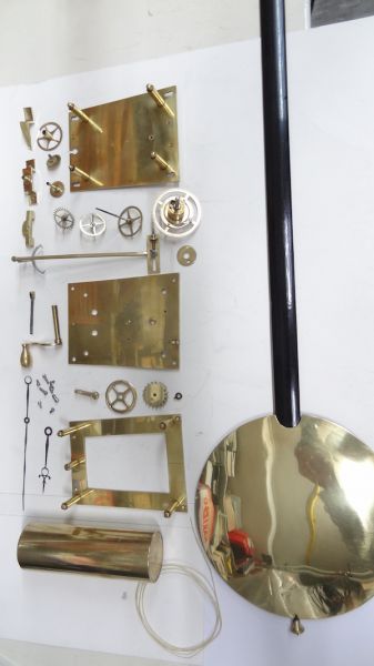 Die Pendelstange ist aus, mit Leinöl getränktem, Nadelholz und schauseitig schwarz poliert, die Pendellinse besteht aus zwei miteinander verschraubten getriebenen Messingscheiben.